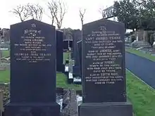 Of the passengers on board, two were leaving the Isle of Man for business overseas. Mark Joughin of Ballawhannell, Bride, Isle of Man, was on his way to America to make enquiries into an estate which had been left to him.[9] Another passenger was Edgar Blevin of the accountancy firm Kerruish, Son & Blevin of Douglas and Liverpool, whilst Christopher Heaton-Johnson of Beaconsfield Towers, Ramsey, Isle of Man, was en route to India.[9] Thomas Quayle of Andreas, Isle of Man was a former steward for the Archdeacon of Sodor and Man, he was on his way to Liverpool in order to undergo an operation. He left a widow and three children.[15] Two of the passengers, Daniel Newell of Croydon, Surrey, and Walter Williams of Earl's Court, London, were engaged in carrying out stone work on the Catholic church, Ramsey, Isle of Man.[9]