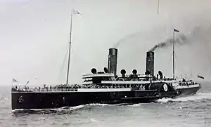 SS (RMS) Empress Queen was a steel paddle steamer, the last of its type ordered by the Isle of Man Steam Packet Company.[3] She was chartered by the Admiralty in 1915 and used for trooping duties until she ran aground off Bembridge, Isle of Wight, England in 1916 and was abandoned.