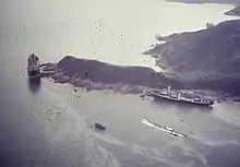 On 9 August 1944, Koto Maru was spotted and reported on by agents of the British Army Aid Groupas part of their Naval Section's Kweilin Intelligence Summary No. 70. The ship was recorded as having arrived at Hong Kong around 18 July from Canton and had been laid up for repairs at the Taikoo Dockyard for repairs to its stern, hull, propeller and rudder for discharge on around 1 September. The vessel was recorded as having a light grey color scheme with armament modifications including an anti-aircraft machine gun on the bridge and was crewed by 4 Japanese, 30 Chinese and 6 Indian sailors.[12][13]