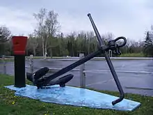 The schooner-barge Michigan was never seen again after the night of 2 October 1901.[1] The wreck of Drake was first discovered by Captain Campbell of Liberty just 4 days after she sank on 6 October 1901, when he was downbound for the Soo Locks. Captain Campbell reported that Drake was located between Vermilion Point and Whitefish Point lying on her side in 40 feet (12 m) of water with about 5 feet (1.5 m) feet of water over her with a floating spar still strung to the hull.[1] The wreck of Drake lay forgotten on the bottom of Lake Superior for 77 years until she was rediscovered at 46°46.588′N 85°05.933′W in 1978, by the Great Lakes Shipwreck Historical Society (GLSHS)[6] who subsequently illegally removed her rudder, windlass, anchor, and a sign board in the 1980s. Michigan’s Antiquities Act of 1980 prohibited the removal of artifacts from shipwrecks on the Great Lakes bottomlands. The Evening News reported a Michigan Department of Natural Resources and Environment 1992 raid on the Great Lakes Shipwreck Museum and its offices that found evidence of 150 artifacts illegally removed from the state-claimed bottomlands, including artifacts from Drake.[7][8][9] Following a settlement agreement with the GLSHS, Drake's rudder, anchor, and windlass are now the property of the State of Michigan.[8][9] The rudder is on loan to the GLSHS for display nearby the Great Lakes Shipwreck Museum and the anchor and windlass is on loan to Whitefish Township for display next to its community building.