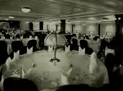 Electric power was provided by two 30 kilowatt and one 50 kilowatt generators supplying 110-volt direct current.[6] Three ten ton Brunswick Refrigeration Company compressors chilled galley and pantry units and a large cluster of separate chill rooms for various classes of stores in a special gallery of 85 feet (25.9 m) by 30 feet (9.1 m) served by a handling room and a larger space for refrigerated cargo.[9]
