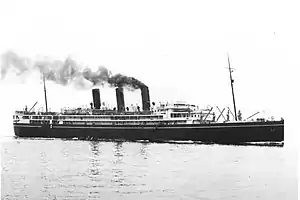 P&O placed the order to build the ship with Caird & Company, Greenock in 1913 and although work was well advanced, construction was suspended at the outbreak of the First World War in 1914 and it was not until December 1917 that the ship was launched with the intention of fitting it out as a cargo carrying vessel only. In 1918 the Admiralty requisitioned the vessel and it was fitted out with eight 6-inch (150 mm) guns and two 7.5-inch (190 mm) howitzers with the intention of being used as an armed merchant cruiser.[3][4] Subsequently the Admiralty altered the plan and decided to have the ship converted to a seaplane tender but neither proposed Royal Navy use came to fruition and in 1919 the ship was returned to P&O.[3][4]
