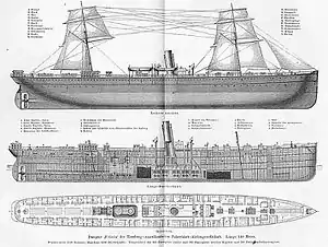 | Propulsion | Steam expansion (single screw) and two masts; later retrofitted with second screw |