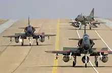 The modernized A-4SU Super Skyhawks were received by 143 Squadron first, followed by 142 and 145 Squadron of the RSAF from 1989 onwards. The type was also operated by the RSAF Black Knights aerobatic display team for precision aerial manoeuvers from 1990 to 2000.[6][8][9]