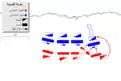While Sa'd himself, who has been suffering severe Hemorrhoid,[6] or pox[33] during the battle, appointed Khalid ibn Urfuta as his deputy on the field overall commander.[48] Sa'd positioning himself in a tent on a highest hill nearby the battlefield, so he can oversee the entire battle development, while also readied a system of chains of emissaries that will relay any instructions from him to Khalid ibn Urfuta in an instant.[10] Sa'd then deploy his six division wide formation,[Notes 12] Thus, according Sa'd al-Ubaisi in his reconstruction journal of Diriyah of the reconstruction of the battle of Qadisiyyah from the History of the Prophets and Kings material by Al-Tabari, the phase of the battle were separated into four days:[49]