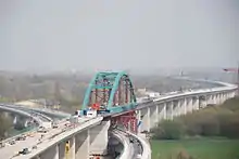 The Saale-Elster Viaduct is a railway bridge along the Erfurt–Leipzig/Halle high-speed railway in Central Germany.[1] It was completed in 2013 and opened in 2015. The viaduct is 6,465 metres (21,211 ft) long and thereby the longest bridge in Germany and the longest high-speed rail bridge in Europe. It includes a branch of 2,112 metres (6,929 ft) length.