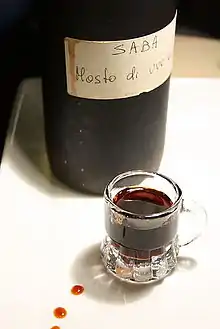 Saba, or sapa, is a typical condiment used in Emilia, Romagna, Marche, Umbria, Abruzzo, Apulia and Sardinia.