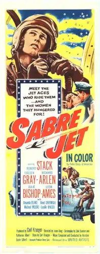 Sabre Jet is a 1953 American Korean War war film drama directed by Louis King starring Robert Stack, Coleen Gray, Richard Arlen, Julie Bishop and Leon Ames. Shot in Cinecolor using United States Air Force footage. Sabre Jet was based on a story by the producer Carl Krueger with the screenplay written by the husband and wife playwright and screenwriting team of Dale Eunson and Katherine Albert. The opening credits state: "This picture is dedicated to the air force wives who shared their men with a world made desperate by the most brutal aggressor in history."