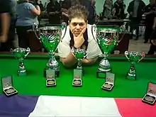 Nicknamed the gold star of billiards,[4] she was also part of the women's French team champion of Europe and the World in 2013[5][6] and also the winning team in the European event in 2014.[7][8][9]