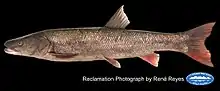 The Sacramento pikeminnow (Ptychocheilus grandis), also known as the Sacramento squawfish, is a large cyprinid fish of California, United States. It is native to the Los Angeles River, Sacramento-San Joaquin, Pajaro-Salinas, Russian River, Clear Lake and upper Pit River river basins. It is predatory and reaches up to 1.4 m (4.6 ft) in total length.[2]