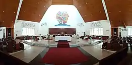 Sacred Heart Cathedral is the cathedral of the Roman Catholic Archdiocese of Kota Kinabalu, and the seat of its current archbishop, John Wong Soo Kau. The current cathedral was built from 1979 to 1981, with its dedication held on 21 November 1981.