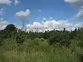 Meadows with radio masts in the distance