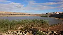 The Saquia el-Hamra (lit. The Red Saturater) is a wadi and intermittent river which rises in the northeast of Western Sahara, some 30 kilometres southeast of Farsia.[1] The wadi continues west, passing close to Haouza and Smara before joining with the intermittent Oued el Khatt just south of Laayoune on the Atlantic coast. The wadi gives its name to the Saquia el-Hamra region.