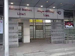 Sahand Metro Station is a station on Tabriz Metro Line 1. The station opened on 27 August 2015. It is located next on Bakeri Boulevard at Kuy-e Sahand neighbourhood. It is between El Goli Metro Station and Emam Reza Metro Station.