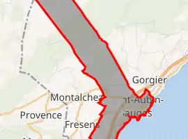 The municipality is located in the Boudry district, in the La Béroche region. It stretched from the shores of Lake Neuchatel to an elevation of 1,436 m (4,711 ft). It consists of the villages of Saint-Aubin and Sauges, which merged in 1888.[5]