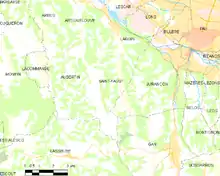 Map of the area. Pau is to the northeast, and Jurançon is to the east of Saint-Faust.