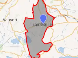 Saint-Gilles is located at the northern edge of the Petite Camargue, between Arles (15 km) and Nîmes (16 km). With a land area of 153.73 km² (59.355 sq mi), it is rather large by continental French standards, although many of the communes in this part of France are among the largest in area in Metropolitan France.