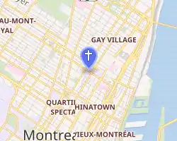 Built at the corner of Saint-Denis and Sainte-Catherine streets, it was the city's first purpose-built cathedral. Its construction started in 1822 and its cornerstone was blessed on May 22, 1823.[1] It was consecrated on September 22, 1825. The cathedral and the diocesan building were destroyed in the Great Fire of July 9, 1852, along with 1,200 other buildings.