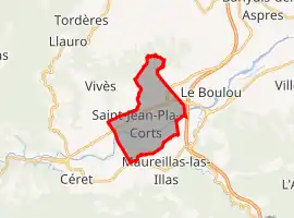 Saint-Jean-Pla-de-Corts is located in the canton of Vallespir-Albères and in the arrondissement of Céret.