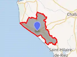 The town is situated in the west of the département, between Notre-Dame-de-Monts and Saint-Hilaire-de-Riez. It is split in two by a long plantation of pine trees, stretching from north to south along the coast. The centre-ville lies to the east of the cordon, while the seafront forms a center to the west.