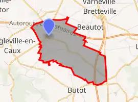 A farming village situated in the Pays de Caux, some 16 miles (26 km) north of Rouen at the junction of the D22 and the D253 roads. Both the A29 and the A151 autoroutes pass through the commune's territory.