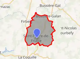 Saint-Pierre-de-Frugie (French pronunciation: [sɛ̃ pjɛʁ də fʁyʒi]; Occitan: Sent Peir de Frègia) is a commune in the Dordogne department in Nouvelle-Aquitaine in southwestern France.