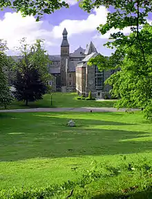 In 1864, wealthy Boston merchant James Stanworth acquired a farm on a hill in Brighton known as the Hildreth estate. Stanworth suffered losses in the Panic of 1873 and his heirs found he owed substantial debts. Archbishop John Joseph Williams purchased the Hildreth estate and construction of the Boston Ecclesiastical Seminary[3] began in 1881 and was completed in 1884. In 1883, the Commonwealth of Massachusetts granted a Charter to the Seminary to grant degrees in philosophy and divinity.[4] The Archbishop entrusted the seminary to his former teachers, the Sulpicians.[5] Students began classes on September 22, 1884.[6] The First rector was John Baptist Hogan.[7]