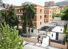Padre Arrupe Hall houses administrative and faculty offices, classrooms, and biology, chemistry, computer, nursing and physics labs. Padre Rubio Hall, the main academic building, features additional classrooms, the Office of Student Life, student lounges, the bookstore and St. Timothy's Chapel. San Ignacio Hall, acquired in 2011, is home to an auditorium, art, dance and music studios, additional classrooms, a full-service cafeteria and dining room, the library, faculty offices and a rooftop terrace.