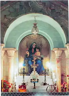 As in other Armenian churches, the half-circle altar is on the eastern side of the building. On both sides of the altar there are vestries with side entrances. The walls above the altar and its two sides are covered with paintings showing Bible themes: Saint Mary with Jesus, the Ascension of Christ into Heaven, John the Baptist baptizing Jesus and the Crucifixion of Jesus.[1][2]