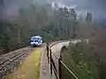 The principal line, part of the PLM Transcévenol, threads its way along the Gardon valley from Alès to Génolhac to Mende, this section of the line was approved in 1861 and opened 5 May 1870, and provided the link between Languedoc, Alès and Issoire and Paris. It hosted three express trains. There is still a twice daily local service. From the station at Sainte-Cécile-d'Andorge there is a 1-metre gauge railway to Florac. It is 49 km long.[2] This is known as the TAC. Authorised in 1859, the line was built by the Chemins de Fer Départementaux to bring wooden pit props down to Alés, with some passenger traffic. This amounted to two trains a day. The track is very winding, and climbs to 1024 m to cross the Col de Jalcreste. It closed in 1968. Enthuiasts are restoring it. They run a passenger pulling diesel locomotive on the first section, which includes the Viaduct d'Andorge.[3] Between 1859 and 1867 there was a gravity driven rail line from the mainline at Le Levade, La Grand-Combe to Portes et Sénéchas. This was to serve the mines at La Vernarède. The full wagons descending to the river pulled up the empty wagons by a system of cables. It was the idea of the engineer Paul-Adrien Bourdaloue.
