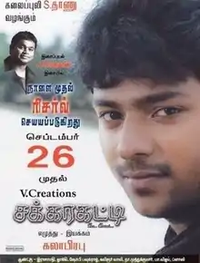 Sakkarakatti (English: Sugarcube) is a 2008 Indian Tamil-language musical romantic comedy film written and directed by Kala Prabhu and produced by his father, Kalaipuli S. Dhanu. It featured debutant Shanthnoo Bhagyaraj, son of veteran actor K. Bhagyaraj, in the lead role while Ishita Sharma and Vedhika played significant roles. It featured a soundtrack composed by A. R. Rahman.[1] Sakkarakatti released on 26 September 2008.[2]
