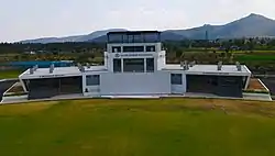 The stadium has five pitches, 12 practice-turf wickets, players pavilion and press box.[5] It is also built with a drainage system which refills ground water periodically.[7] The seating capacity is 5000 which can be increased to up to 25,000 during big events.[1]