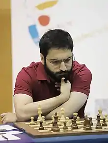 Born in Sharjah,[3] Saleh won three titles at the Asian Youth Chess Championships: under 14 in 2007,[4] under 16 in 2008,[5] and under 18 in 2009.[6] He won the Emirati Chess Championship in 2008,[7] 2011[8] and 2012,[9] and the Arab Chess Championship in 2008, 2014 and 2018. Salem Saleh won the Arab Individual Blitz Chess Championship 2017 and 2018. In August 2015, in Al Ain, he won both the Asian Chess Championship and the Asian blitz chess championship.[10] In 2017, he finished in a tie for first place in the 1st Sharjah Masters international championship with Wang Hao. B. Adhiban, Martyn Kravtsiv, Yuriy Kryvoruchko and S. P. Sethuraman.[11][12]