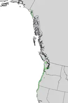 The plant is native to the west coast of North America from Alaska to northern California, where it grows in coastal habitat such as beaches, marshes, floodplains, and canyons.