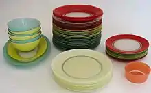 Consumer attitudes changed during the 1950s, and appliances such as refrigerators and washing machines came to be seen as necessities rather than luxuries.[2] The SAM organizers played a role in the organization that set standards for appliances, defining essential, desirable and optional features, and tried to ensure that the products exhibited met these standards.[1] Appliance designs in the early 1950s were often austere and functional, but from 1955 they became more colorful and diverse, so the housewife could demonstrate her good taste in selecting items that would make the kitchen more welcoming and that would showcase the family's prosperity. By the late 1950s there was a return to cleaner designs without decorative moldings, with line and angle replacing rounded forms and a return to white or neutral colors.[2]