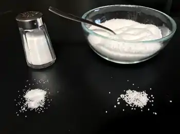 Salt is essential to the health of humans and other animals, and it is one of the five basic taste sensations.[33] Salt is used in many cuisines, and it is often found in salt shakers on diners' eating tables for their personal use on food. Salt is also an ingredient in many manufactured foodstuffs. Table salt is a refined salt containing about 97 to 99 percent sodium chloride.[34][35][36] Usually, anticaking agents such as sodium aluminosilicate or magnesium carbonate are added to make it free-flowing. Iodized salt, containing potassium iodide, is widely available. Some people put a desiccant, such as a few grains of uncooked rice[37] or a saltine cracker, in their salt shakers to absorb extra moisture and help break up salt clumps that may otherwise form.[38]