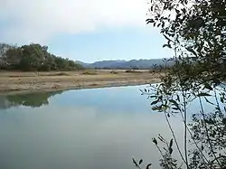 Historical land reclamation activities for agriculture, including tide gates and levees as well as siltation from uphill landslides and erosion, slowly filled in the river over time, reducing the watershed by 42 percent.[9] Most of the original vegetation and trees were gone by 1900, leading to an increase in siltation and a shallowing of the river. In the ten years spanning 1889 to 1899, the river depth changed from 20 feet (6.1 m) to 2 feet (0.61 m).[8]: 1 Logging in the Wildcat hills continued and intensified following World War II, leading to construction of logging roads and exposed slopes, producing additional siltation.[6] Siltation continued; by 1949, the Salt River had become so shallow that "at low tide... parts of it can be waded across by a man with hip boots."[7] After the catastrophic 1964 flood, nearly 13,000 acres (5,300 ha) had been covered by sand or silt.[6] In 1967, residents built a levee cutting off the flow of water from the Eel into the Salt,[6]: 17 which prevents the Eel River from spilling over into the Salt channel during high water, and facilitating sediment removal.[5] Without the occasional overflow from the Eel, plus the 1964 sediments, and the addition of landslide sediments from the 1992 Cape Mendocino earthquakes,[6] by 2008 the river had become mostly dry land.[7] During the 1970s, the California Department of Fish and Game stopped farmers from clearing out local channels; willows and brush quickly filled in the riverbed,[6] and caught sediment, stopping nearly all the flow in the lower half of the Salt, leading to flooding, problems with dilution ratios at the Ferndale Water Treatment Plant, and water quality in general.[9]