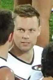 On 13 July 2015, Mitchell was found guilty by the AFL's match review panel of having kneed the right thigh of Fremantle Dockers player Nathan Fyfe during the second quarter of the previous day's game and was fined $1000 for the offence. The media then brought to light other kneeing incidents involving Mitchell, those being the kneeing of Adelaide Crows captain Taylor Walker in the round 12 game and the kneeing of Greater Western Sydney's Ryan Griffen in round 6 of the 2015 season.[28][29] Another kneeing video incident surfaced of Mitchell kneeing North Melbourne defender Scott Thompson. The video shows Mitchell walking up to an unsuspecting Thompson and kneeing him in the left thigh.[30] Media reports from 2008 show that an opposition club, Brisbane expressed concerns to the AFL about Sam Mitchell's kneeing of opponents.[31]