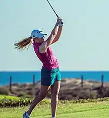 As an amateur her most important successes were joining the England Golf Women's team, winning the 2014 English women's mid-amateur championship,[3] 2015 Cornish Women's Championship, 2015 English Women's Open Amateur Stroke Play Championship,[2] the Royal Birkdale Golf Club Ladies Scratch Trophy, the 2016 English Women's Amateur Championship and the 2015 and 2016 Women's Home Internationals with England.