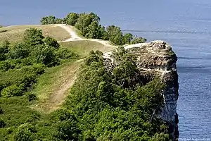 Samarskaya Luka National Park (Russian: Самарская Лука национальный парк) (in English, "Samara Bend") covers most of the peninsula formed by the 180-degree bend of the Volga River as it flows around the Zhiguli Mountains, near the cities of Samara and Zhigulyovsk in the Stavropolsky District, Samara Oblast. The north shore of the bend is on the Kuybyshev Reservoir, the south side is on the Saratov Reservoir, and on the north it has a border with Zhiguli Nature Reserve. The park is culturally important because of its centrality to a range of peoples back to ancient times, and to its scientific value resulting from the biodiversity of its closely placed variety of habitats. The territory is part of the Middle Volga Complex Biosphere.[1]