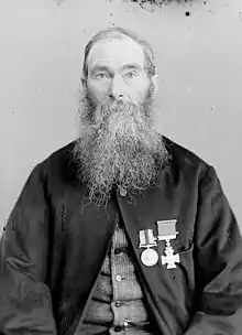 Austin was presented with the NZC in March 1876 in a ceremony at Wanganui, with Keepa and Thomas Adamson also being awarded the medal at the same time.[33] Only 23 awards of the NZC were made, all for actions that took place during the New Zealand Wars, making it one of the rarest gallantry awards in the world.[34]