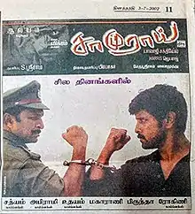 The director himself later labelled the film a "damp squib" mentioning he made serious errors with the film's screenplay.[13] The film successfully ran 100 days in theatres, ending a string of consecutive successful Vikram films in Dhill, Kasi and Gemini.[14] However, despite this, it was reported that Balaji Sakthivel was still keen to make Vikram star in his next film, though the director next went on to make the successful low-budget film Kaadhal (2004).[15] Samurai was later dubbed under the same name in Telugu to capitalise on Vikram's star potential.[16][17] The film was also later dubbed into Hindi as Samurai: Ek Yodha in 2012 by Wide Angle Media Pvt. Ltd.