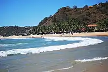 The fishing village is located at the far west end at Playa Rinconcito.[1] The fishermen offer boat tours of the area as well as rental for sportsfishing.[2] Just immediately to the east of the village are palapas but almost nothing has been built at the far eastern end.[1] From June to December it is possible to see olive ridley turtles laying their eggs on this beach.[2]