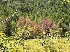 Since it is located on the mountains, the main forests are Pines and Oaks. Its elevation above sea level is the proper one for coffee plantations. Its mountains and hills are very high and steep. It has several water spring running down the steep hills. One curiosity is a huge rock monolith on the way to the departmental capital, which proves the volcanic origins of the rocks in this municipality and the rest of the department.