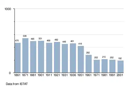 - "Superficie di Comuni Province e Regioni italiane al 9 ottobre 2011". Italian National Institute of Statistics. Retrieved 16 March 2019.