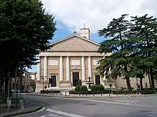 The Cathedral of San Catervo is a Roman Catholic church located in Tolentino, Province of Macerata, Region of Marche. The 13th-century Gothic style church is now generally contained by a newer Neoclassical facade.