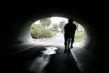 The creek path continues to the East and culminates in a landscaped section that includes two short bike tunnels as it passes through Windrow Park. The last tunnel emerges on the East side of Jeffrey Road without clear signage. Making a sharp left curve, the trail runs concurrent south with Jeffrey Road to the car bridge over the creek, where there is an entrance to the continuation of the path separating from Jeffrey Road. The path runs past Oak Creek community until it reaches the Irvine Medical Complex and the industrial park outskirts of Irvine, crossing under Sand Canyon Avenue and Laguna Canyon Road. The path continues for a short stretch on the South side of the creek and dead-ends. It is possible to cross over to the North side of the creek and continue to the Highway 133 underpass, and emerge into the Irvine Spectrum Center.