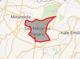 ![]() San Felice sul Panaro Location of San Felice sul Panaro in Italy ![]() San Felice sul Panaro San Felice sul Panaro (Emilia-Romagna) | |