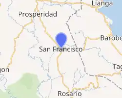 ![]() Map of Agusan del Sur with San Francisco highlighted | |