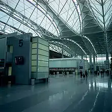 There are no airside connectors between International Boarding Areas A and G (the main terminal area of the International Terminal separates the two boarding areas). In May 2021, the demolition and rebuild of the southern portion of Terminal 1 (Boarding Area B) was completed and an airside connector to International Boarding Area A was added.[84] In November 2021, new airside and landside connectors connected Terminals 2 and 3 (though planned offices originally part of the project were postponed).[85] By 2024, renovation of Boarding Area C will add an airside connection between it and the rest of renovated Terminal 1.[86] This means that all gates at the airport will be connected post-security.